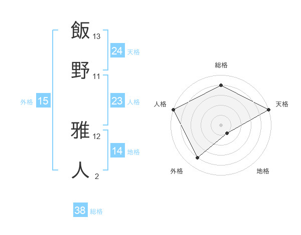飯野 雅人さんの天格は24画の5点!