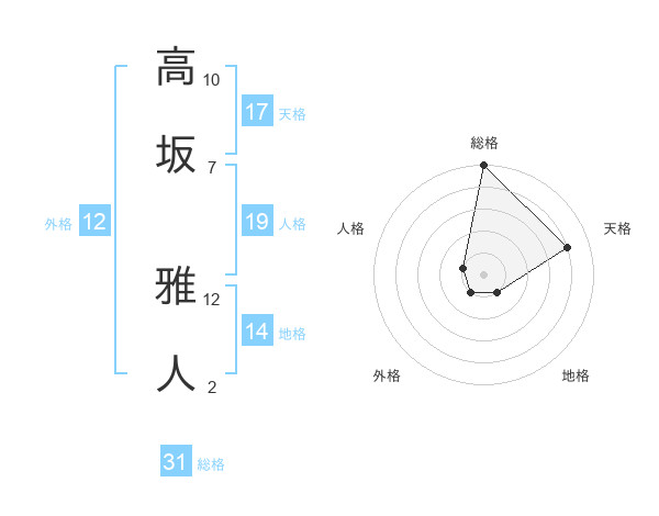 高坂 雅人さんを姓名の画数から五運を鑑定