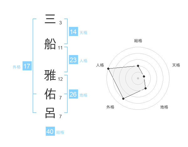 三船 雅佑呂さんを姓名の画数から五運を鑑定