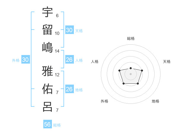 宇留嶋 雅佑呂さんの天格は30画の2点!