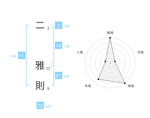 二 雅則さんの総格は23画の5点!