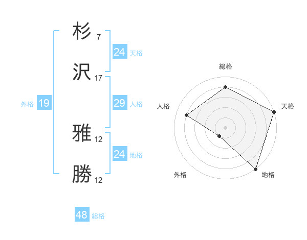 杉沢 雅勝さんを姓名の画数から五運を鑑定
