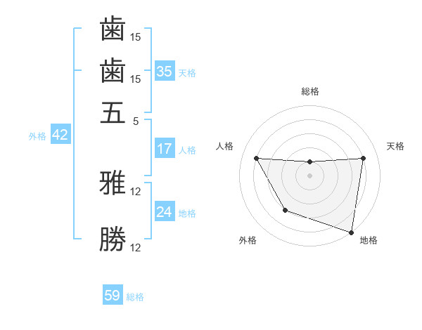 歯歯五 雅勝さんを姓名の画数から五運を鑑定