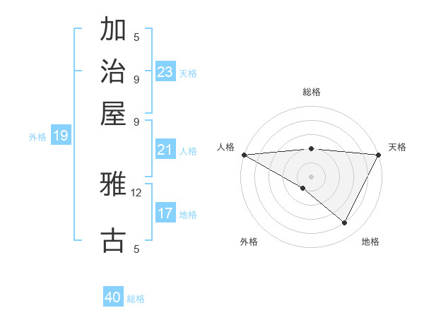 加治屋 雅古さんを姓名の画数から五運を鑑定