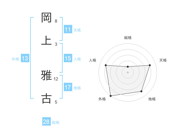 岡上 雅古さんを姓名の画数から五運を鑑定