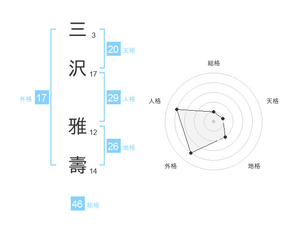 三沢 雅壽さんを姓名の画数から五運を鑑定