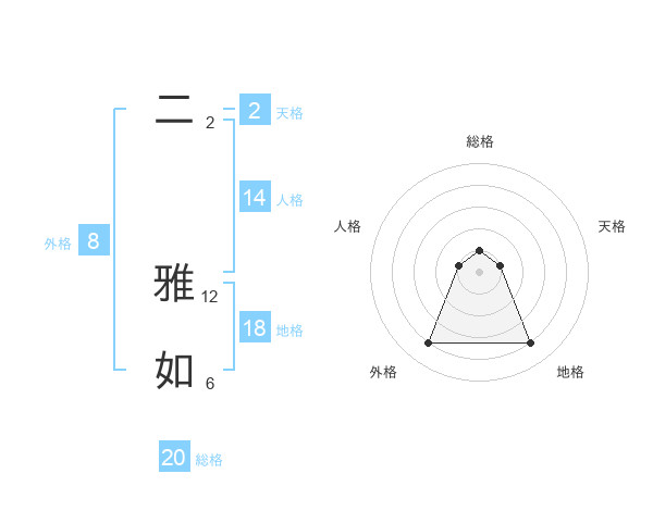 二 雅如さんの総格は20画の1点!