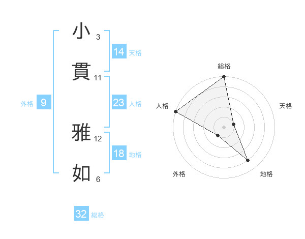 小貫 雅如さんを姓名の画数から五運を鑑定