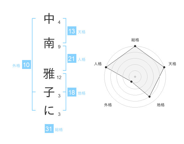 中南 雅子にさんの天格は13画の5点!