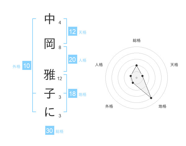 中岡 雅子にさんを姓名の画数から五運を鑑定
