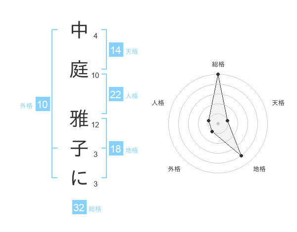 中庭 雅子にさんを姓名の画数から五運を鑑定