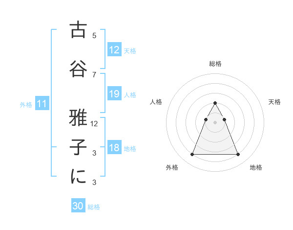 古谷 雅子にさんを姓名の画数から五運を鑑定