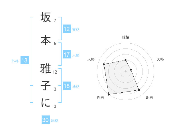 坂本 雅子にさんの外格は13画の5点!