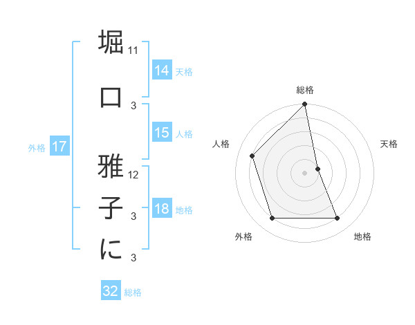 堀口 雅子にさんを姓名の画数から五運を鑑定