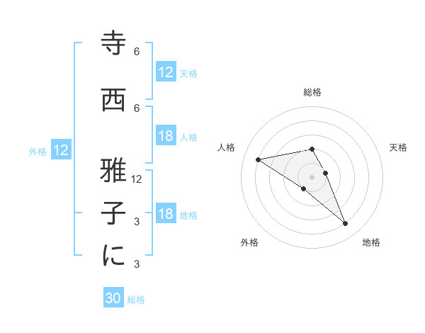 寺西 雅子にさんを姓名の画数から五運を鑑定