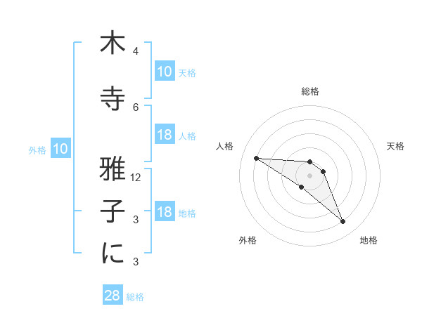 木寺 雅子にさんを姓名の画数から五運を鑑定