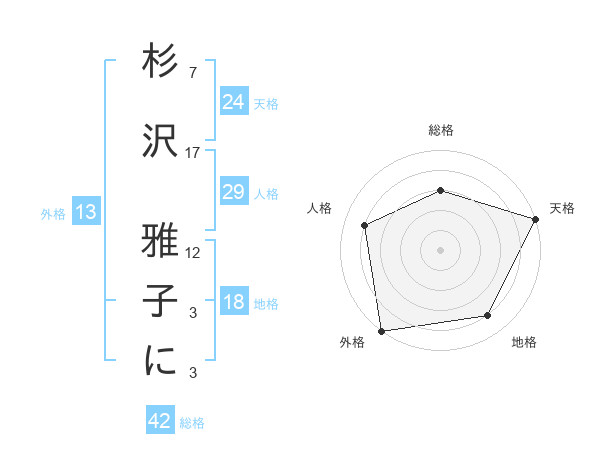 杉沢 雅子にさんを姓名の画数から五運を鑑定