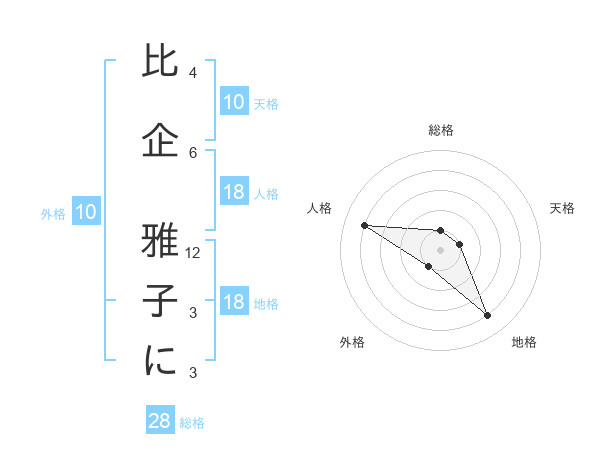 比企 雅子にさんを姓名の画数から五運を鑑定