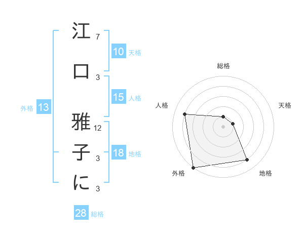 江口 雅子にさんを姓名の画数から五運を鑑定