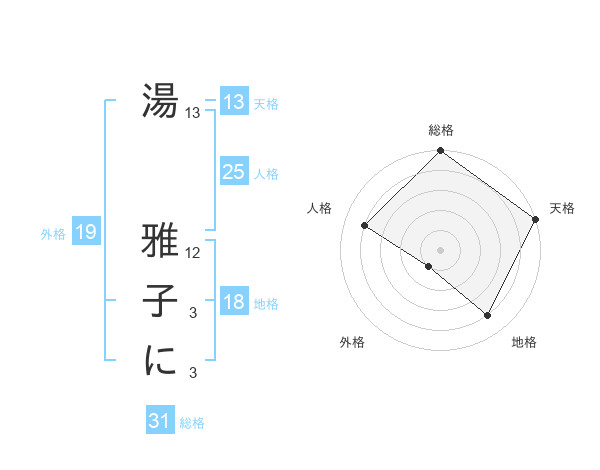 湯 雅子にさんの天格は13画の5点!