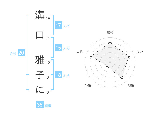 溝口 雅子にさんの天格は17画の4点!