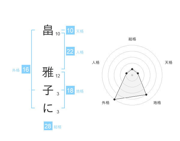 畠 雅子にさんの外格は16画の5点!