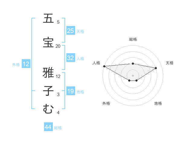 五宝 雅子むさんの外格は12画の1点!