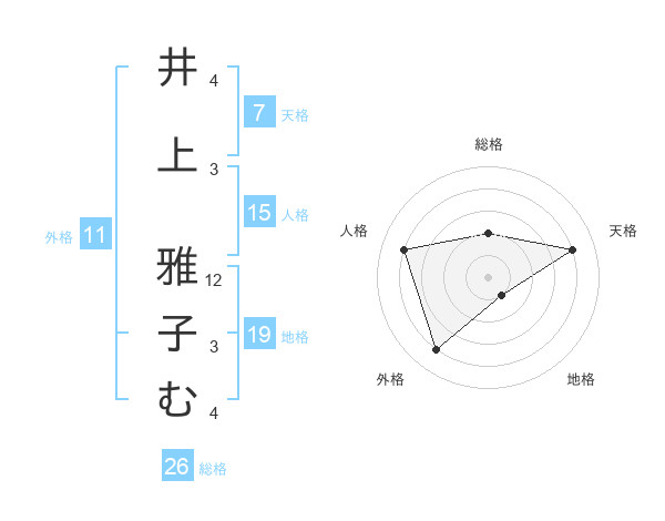 井上 雅子むさんを姓名の画数から五運を鑑定