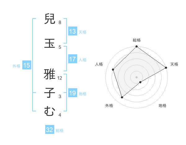 兒玉 雅子むさんを姓名の画数から五運を鑑定