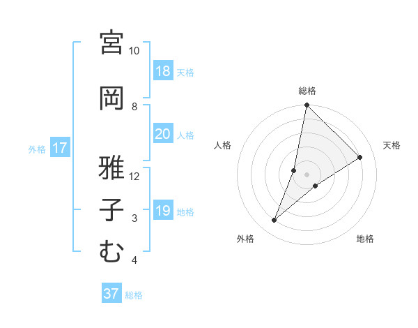宮岡 雅子むさんを姓名の画数から五運を鑑定