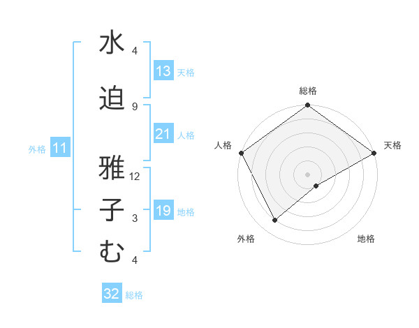 水迫 雅子むさんを姓名の画数から五運を鑑定