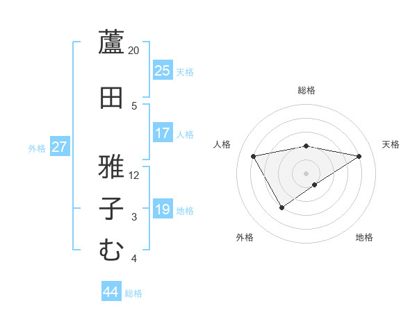 蘆田 雅子むさんを姓名の画数から五運を鑑定