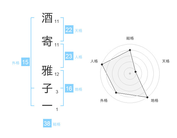 酒寄 雅子一さんを姓名の画数から五運を鑑定