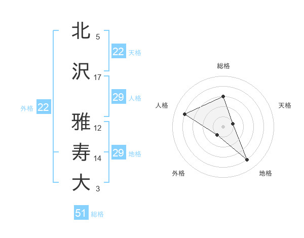 北沢 雅寿大さんの総格は51画の3点!
