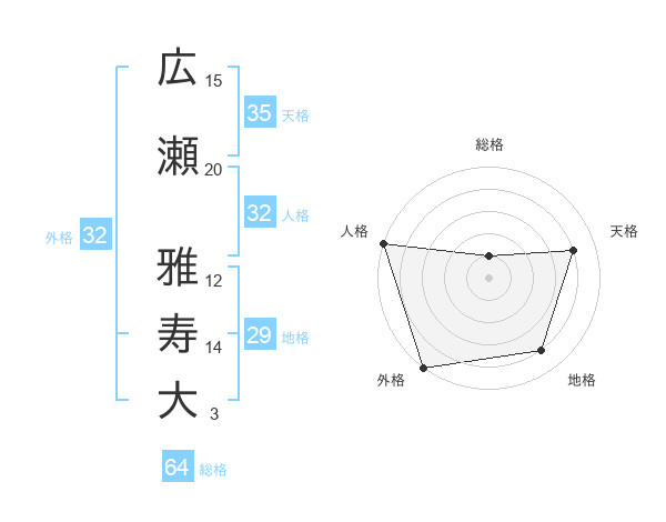 広瀬 雅寿大さんを姓名の画数から五運を鑑定