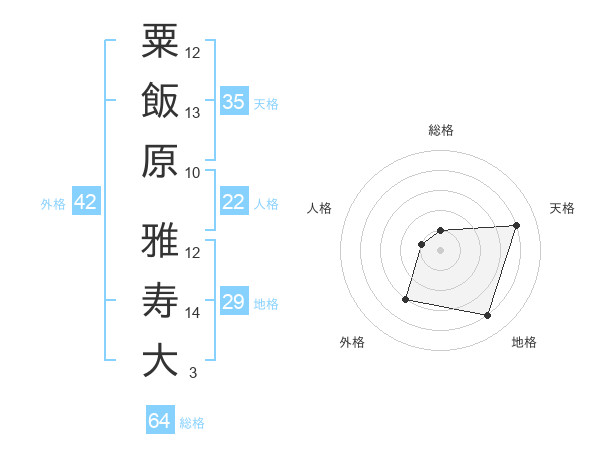 粟飯原 雅寿大さんを姓名の画数から五運を鑑定