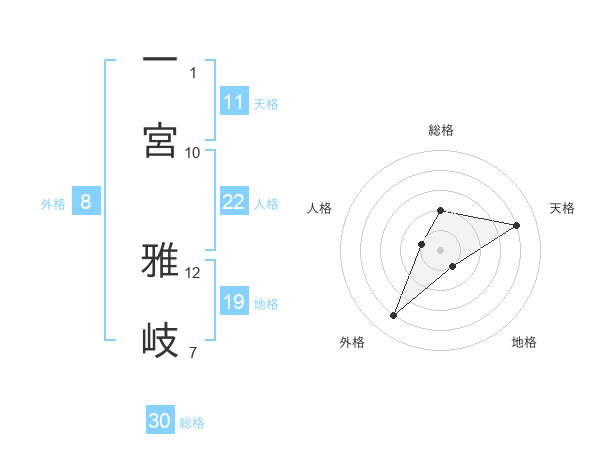 一宮 雅岐さんを姓名の画数から五運を鑑定