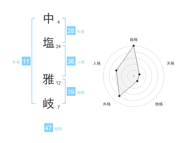 中塩 雅岐さんを姓名の画数から五運を鑑定