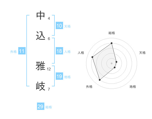 中込 雅岐さんの総格は29画の4点!