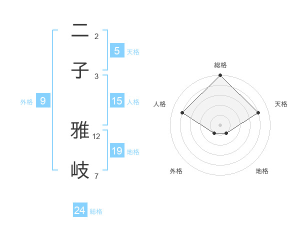 二子 雅岐さんを姓名の画数から五運を鑑定