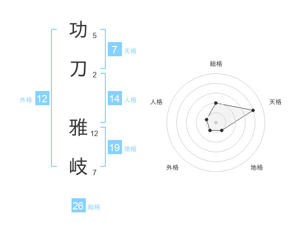 功刀 雅岐さんの総格は26画の2点!
