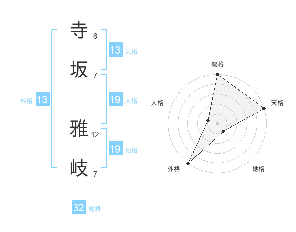 寺坂 雅岐さんの総格は32画の5点!