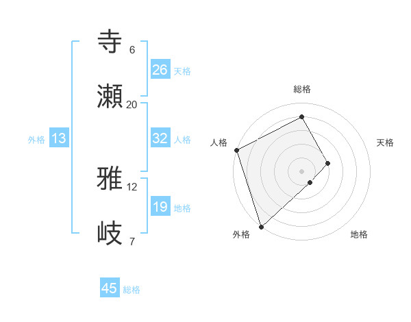 寺瀬 雅岐さんの天格は26画の2点!