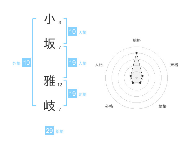 小坂 雅岐さんを姓名の画数から五運を鑑定