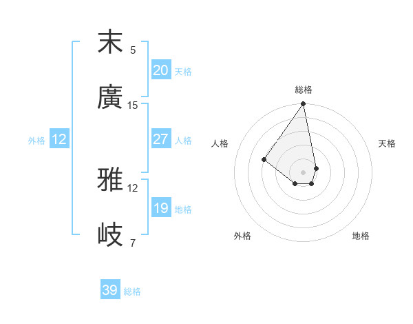 末廣 雅岐さんの総格は39画の5点!