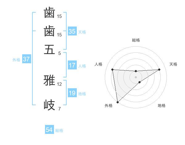 歯歯五 雅岐さんを姓名の画数から五運を鑑定