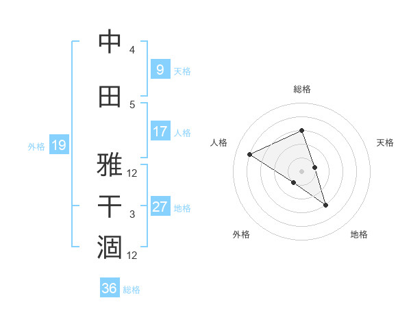 中田 雅干涸さんを姓名の画数から五運を鑑定