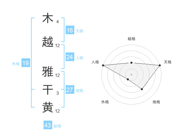 木越 雅干黄さんを姓名の画数から五運を鑑定