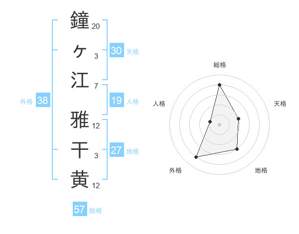 鐘ヶ江 雅干黄さんの外格は38画の4点