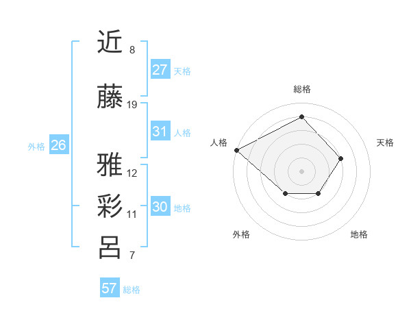 近藤 雅彩呂さんの総格は57画の4点